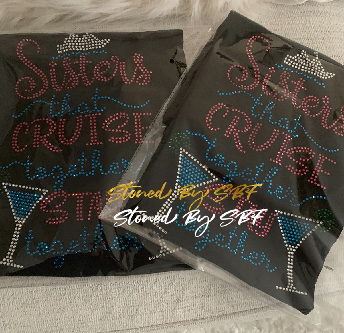 At Stoned by SBF, our journey began with a love for sparkle and a single rhinestone shirt. Our founder's passion for all things that shine quickly evolved into a commitment to creating custom shirts that allow individuals to express themselves boldly and beautifully.