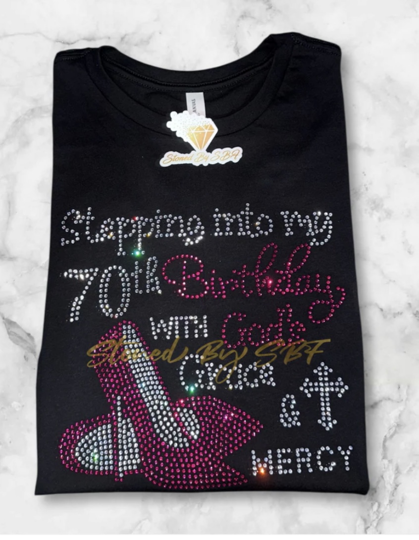 Stepping Into My (Choose Age) Birthday Like A Boss Rhinestone Shirt
